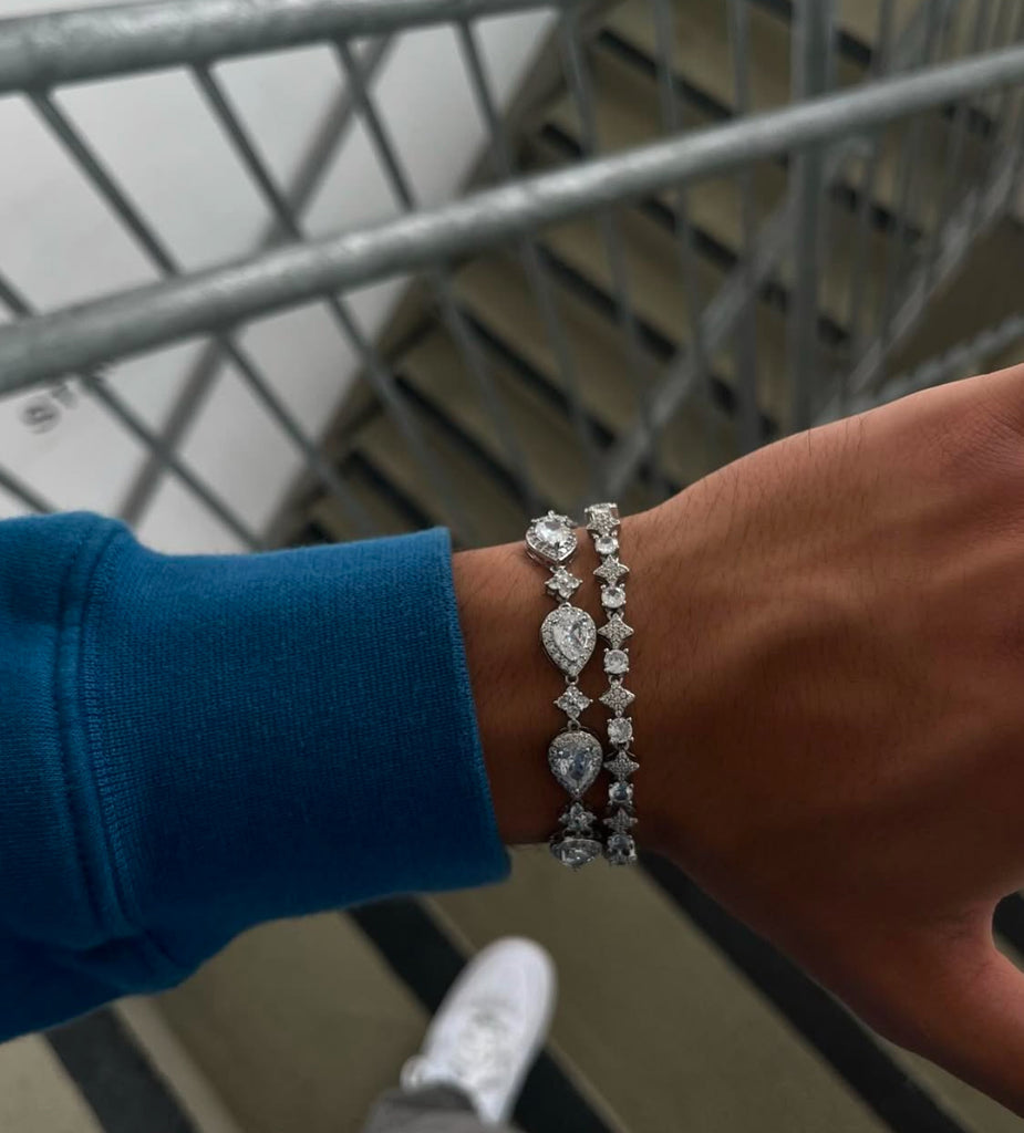Éclaté™ embodies elegance in motion. Teardrop-cut zirconia stones reflect pure brilliance across a refined silver frame — perfect for layering or wearing solo for a clean, modern look.